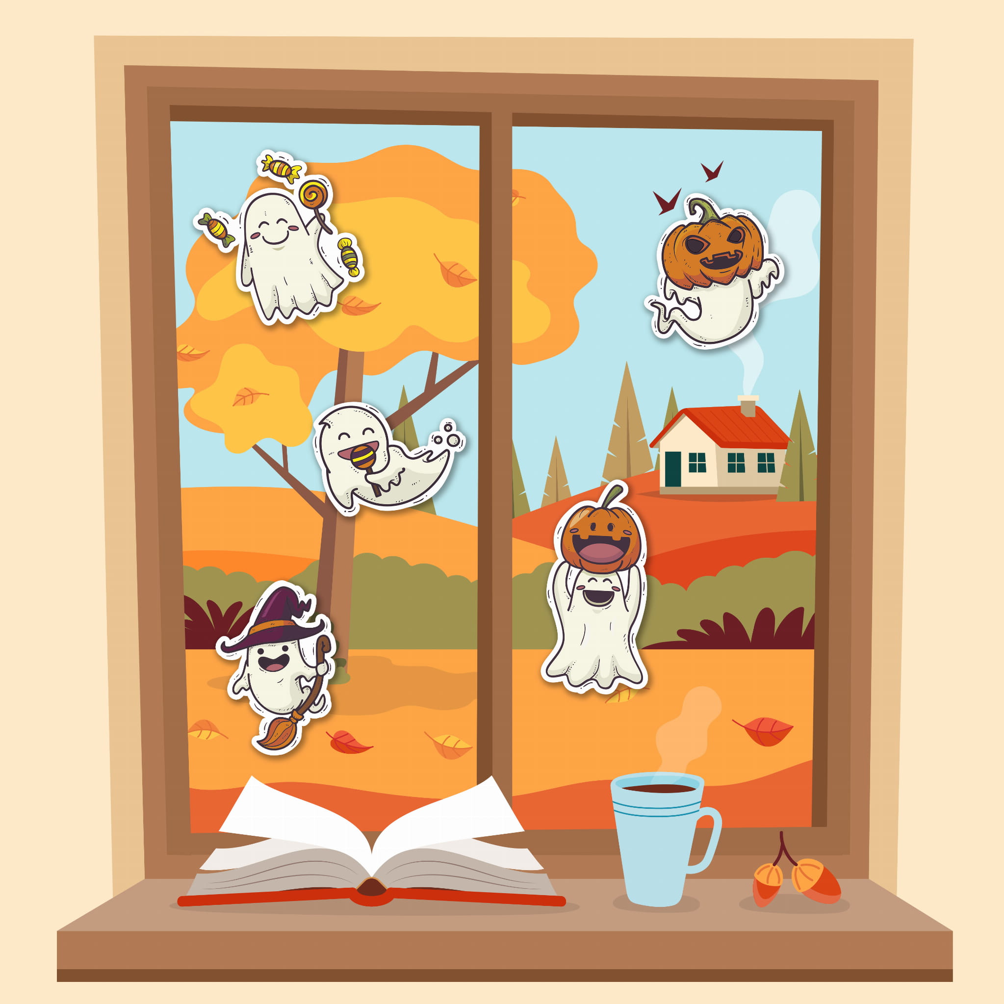 Dekoracje można bez problemu przymocować do okna, ściany lub tablicy za pomocą dwustronnych przezroczystych kropek klejowych*