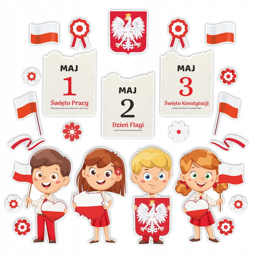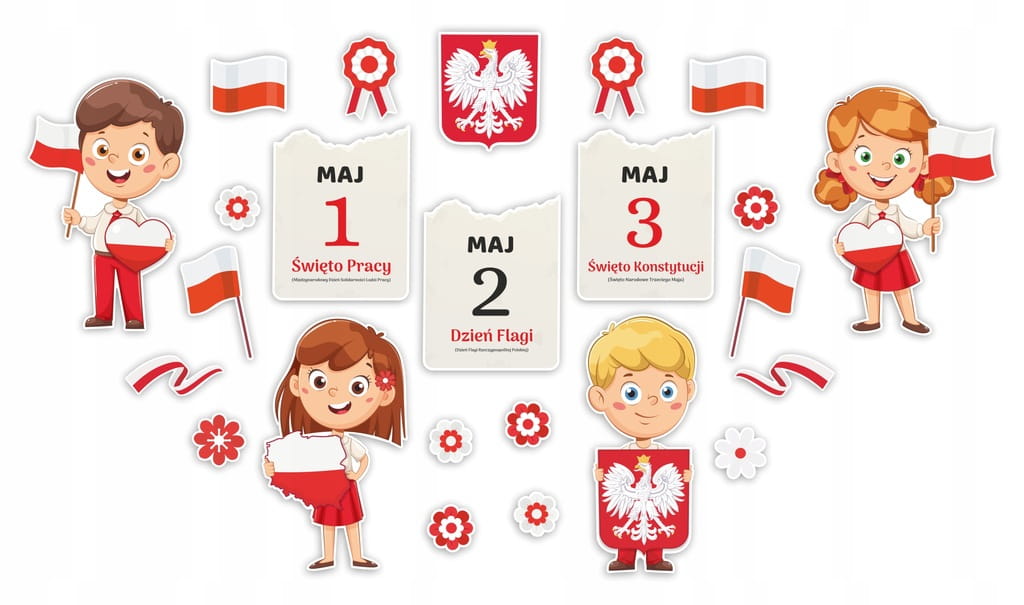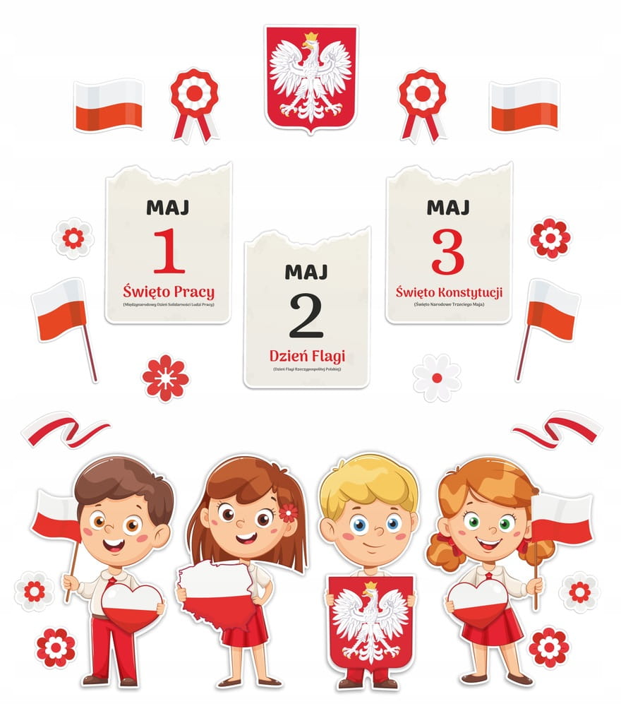 - Kolorowa jednostronna Ozdoba Patriotyczna - Duży zestaw z okazji Święta konstytucji 3 maja i Dnia flagi, idealne także na szkolną tablice!