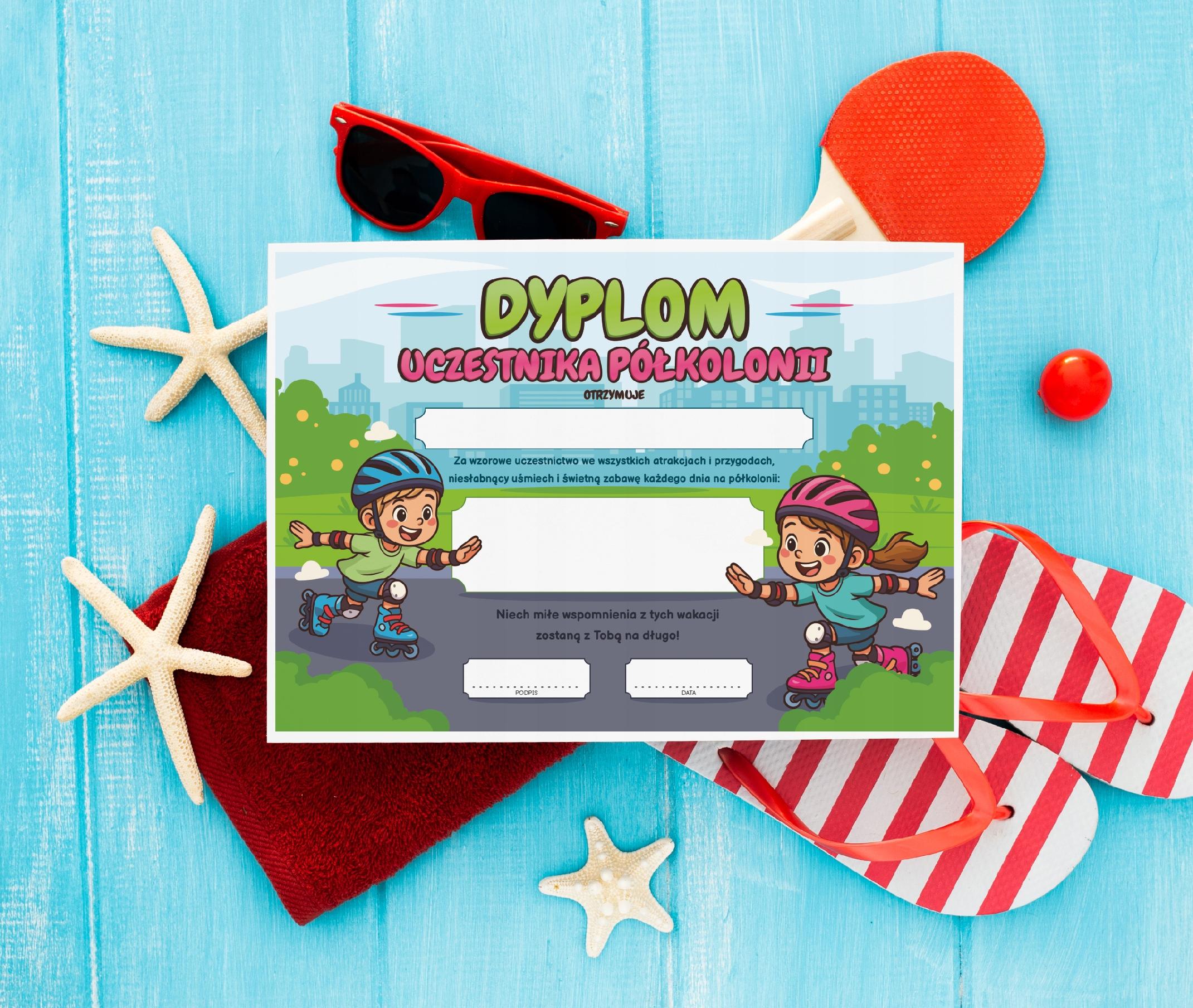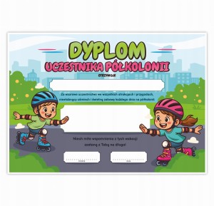 Dyplom Uczestnika Półkolonii - Pamiątka upominek za obóz letni - ROLKI A4