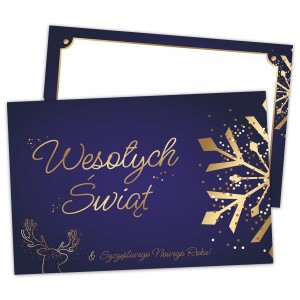 Elegancki świąteczny wygląd kartki z nadrukiem i miejscem na własne życzenia to idealne urozmaicenie świąt zarówno dla dzieci i dorosłych!