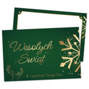 KARTKA ŚWIĄTECZNA DWUSTRONNA WESOŁYCH ŚWIĄT ŻYCZENIA ZIELONA