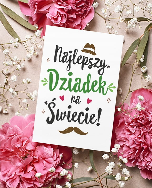 Elegancki wygląd kartki z nadrukiem i miejscem na wypisanie własnego tekstu to idealne urozmaicenie Dnia Dziadka! także tego szkolnego / przedszkolnego.