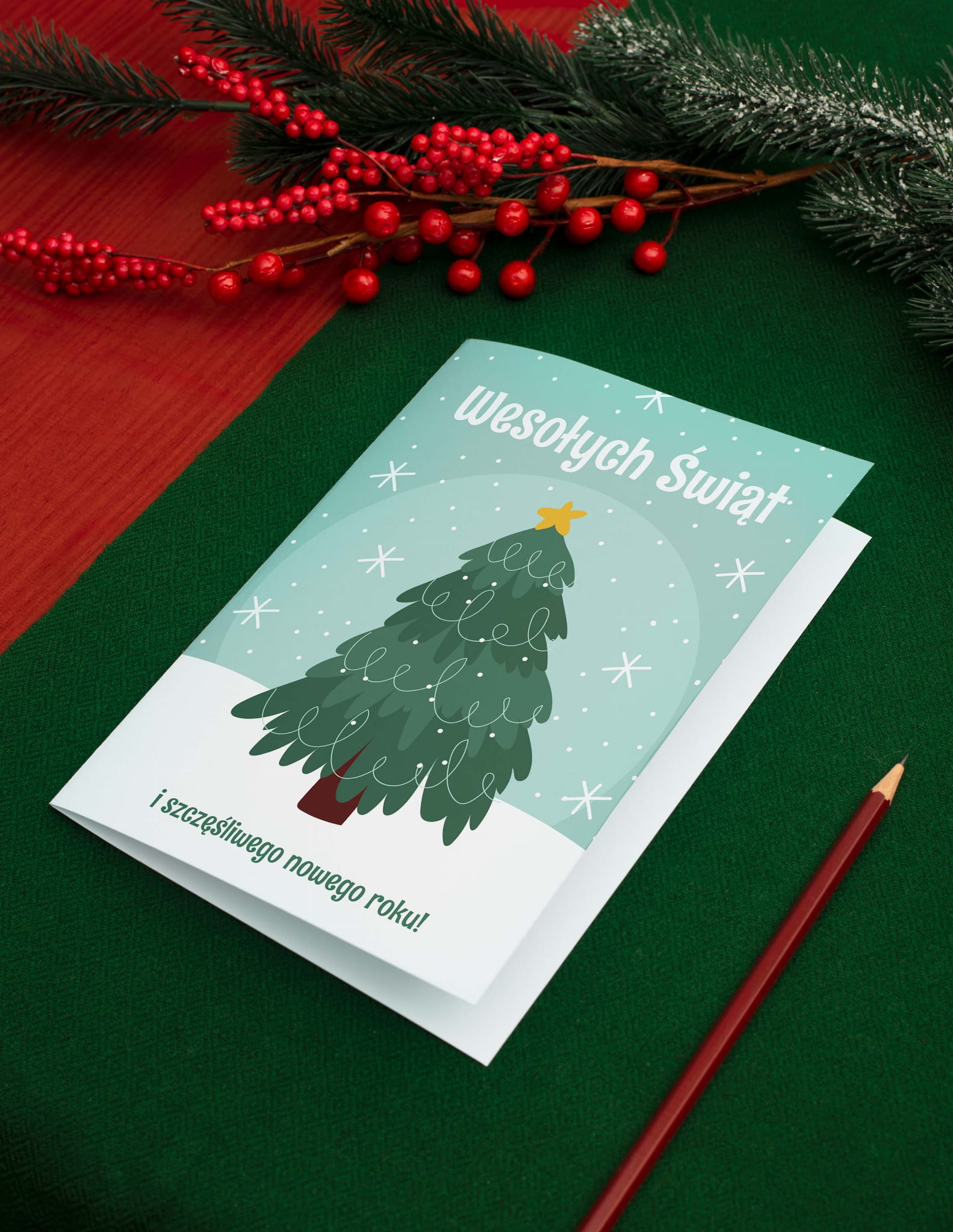 Motyw: świąteczny, z napisem „Wesołych Świąt”