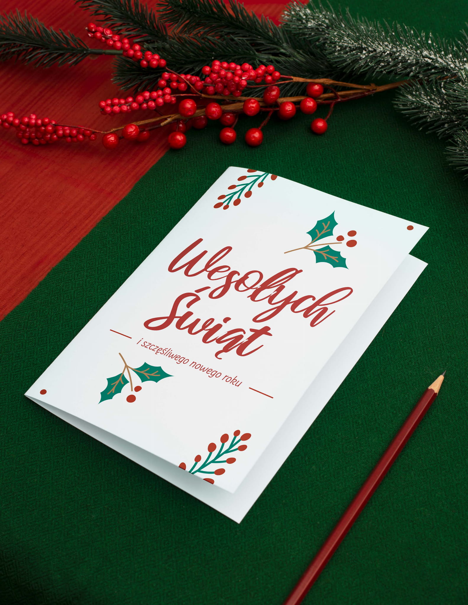 Składana Kartka Świąteczna - napis - Wesołych Świąt i Szczęśliwego Nowego Roku!