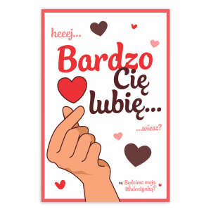 Kartka Walentynkowa - Hej, Bardzo cię lubię! 01 - Koreańskie serce - 10 x 15 cm