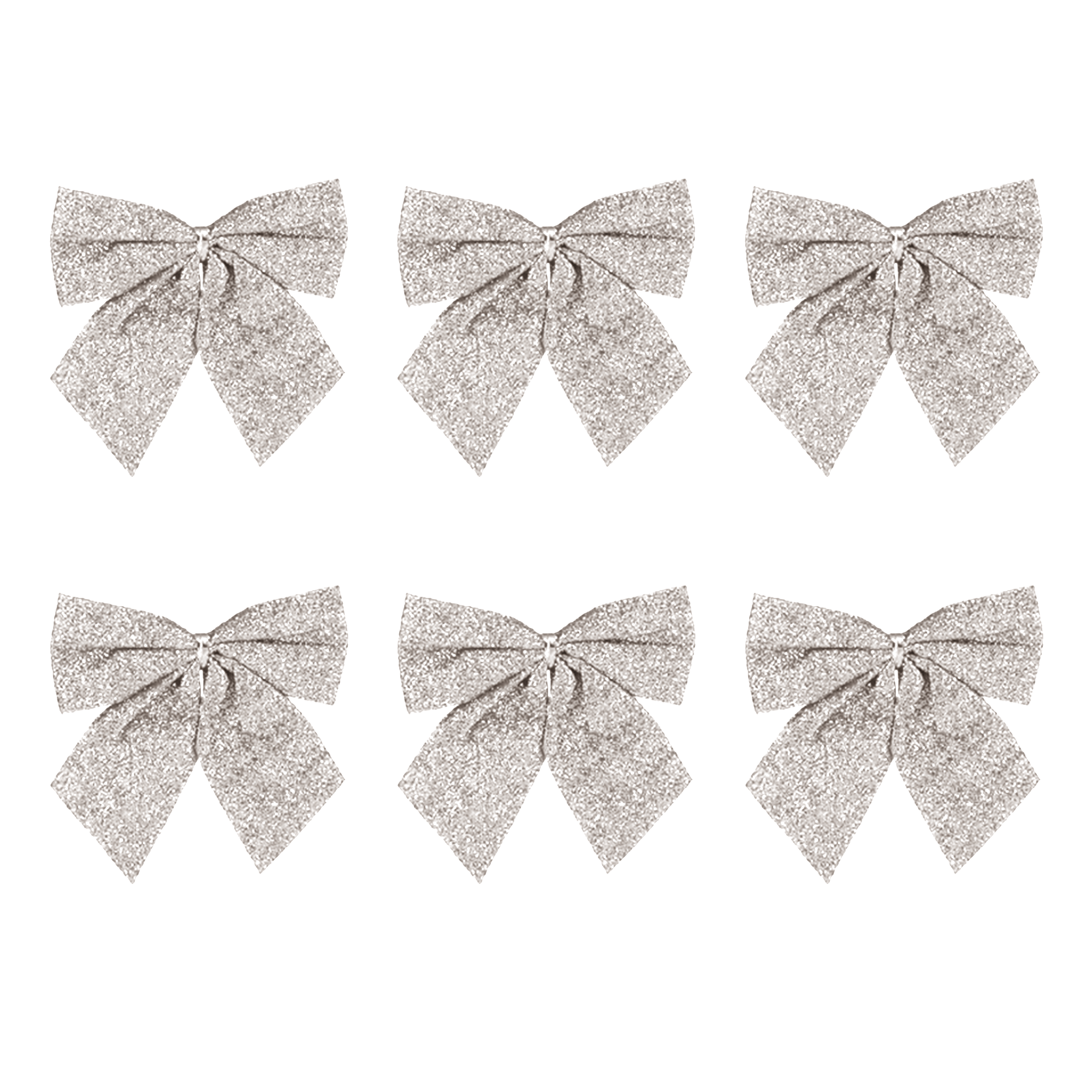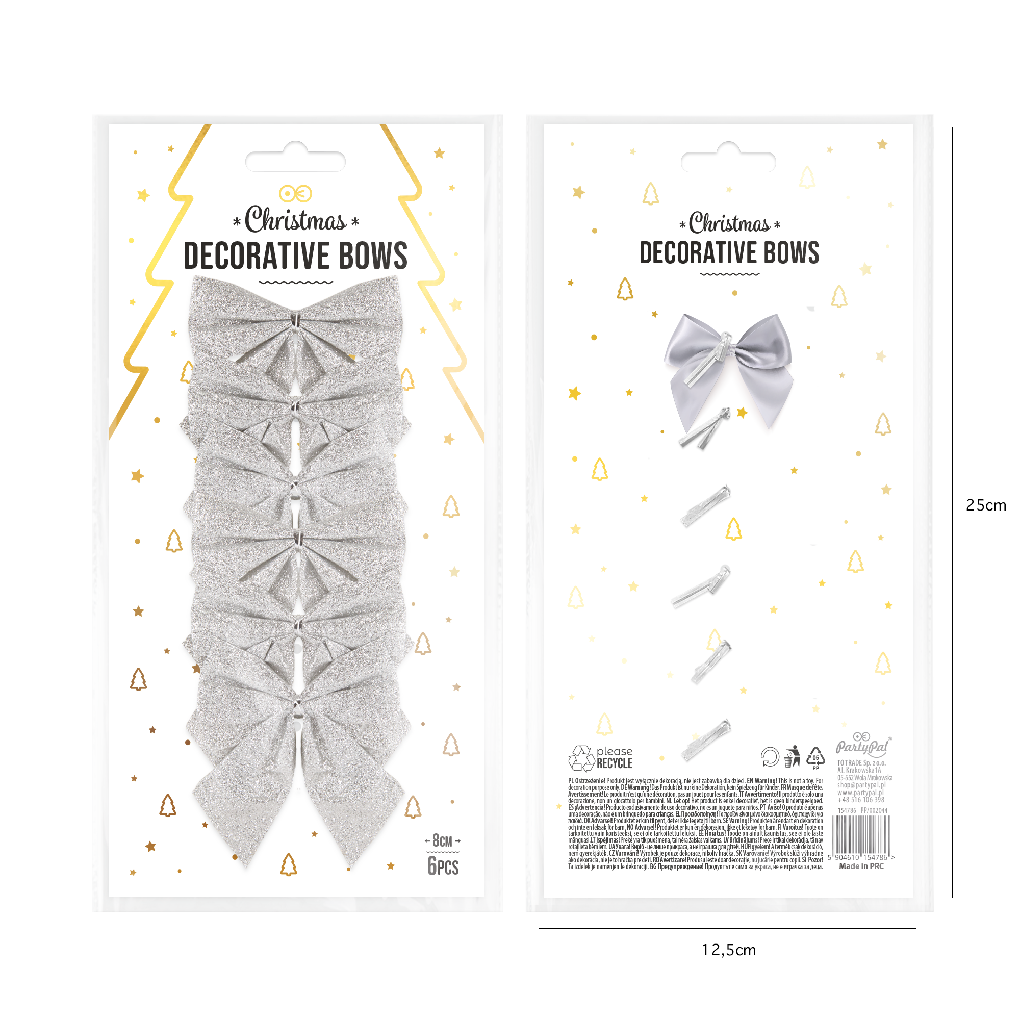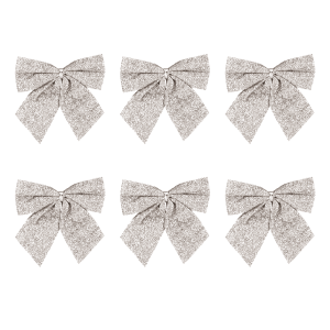 Ten zestaw 6 srebrnych, brokatowych kokardek to uniwersalna dekoracja, która doda blasku każdemu prezentowi i wnętrzu w okresie świątecznym. Kokardki świetnie sprawdzą się nie tylko do ozdabiania prezentów, ale także do stroików, aranżacji stołu, dekoracji choinki czy innych świątecznych dekoracji, tworząc elegancką i efektowną atmosferę Świąt Bożego Narodzenia.