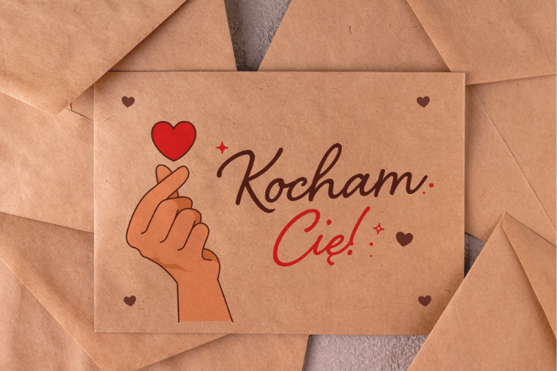 - Motyw: napis Kocham Cię + serduszko