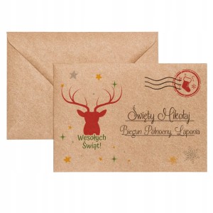 Piękny Kraftowy wygląd koperty urozmaicony o świąteczny nadruk to idealne urozmaicenie świąt zarówno dla dzieci i dorosłych!
