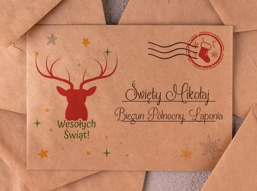 KOPERTA ŚWIĄTECZNA - IDEALNA NA ŚWIĄTECZNY LIST DO MIKOŁAJA - ZNACZEK I ADRES ŚWIĘTEGO MIKOŁAJA