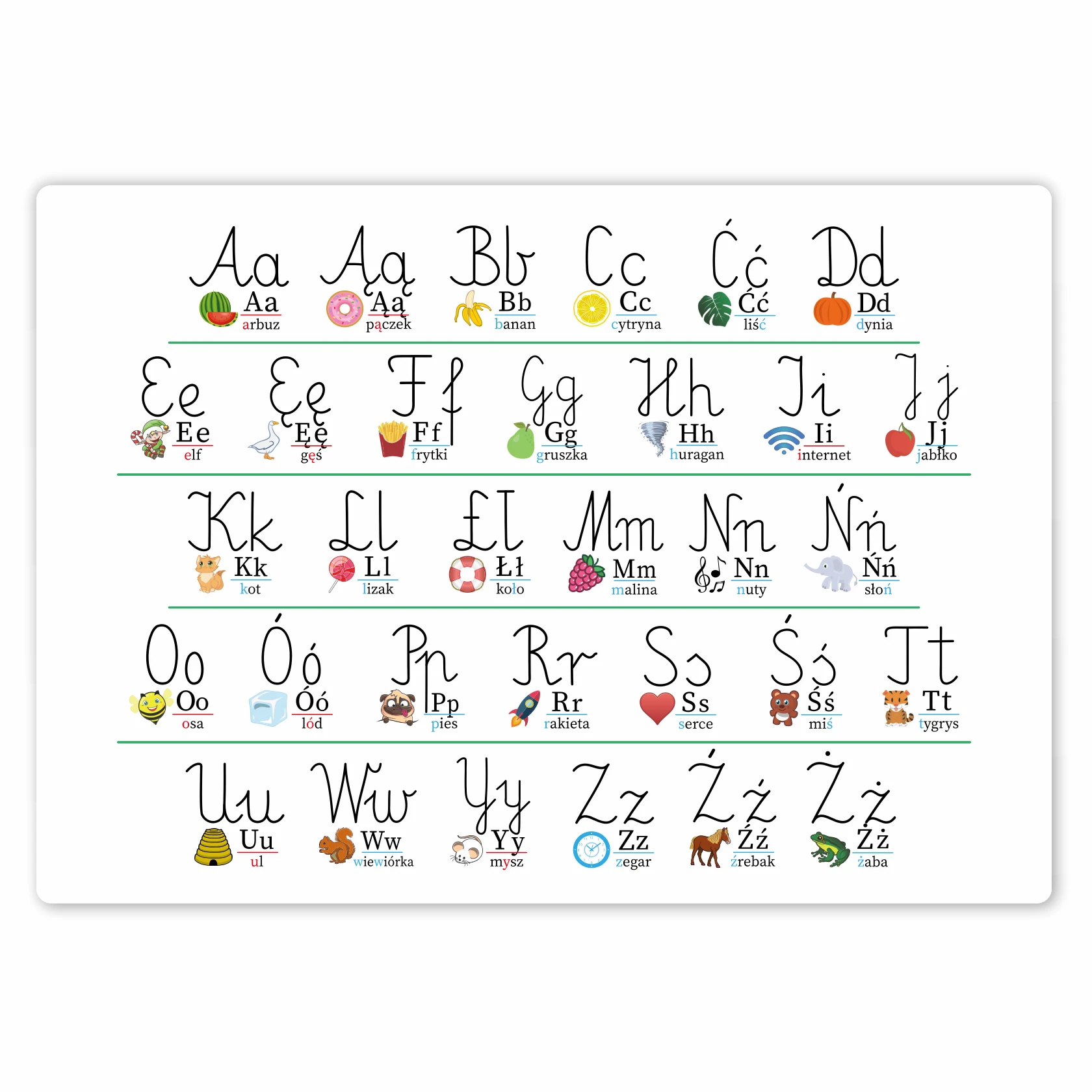 Plakat Edukacyjny - Alfabet z Polskimi znakami - Poziomo- nauka literek