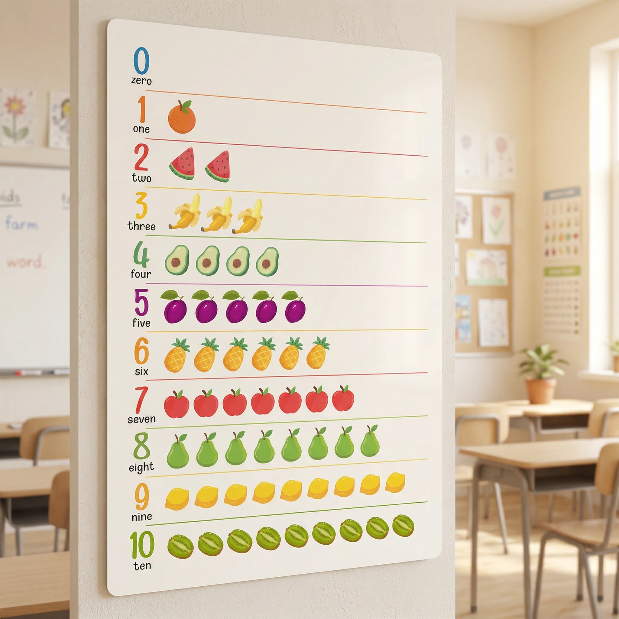 Plakat do nauki cyfr i liczenia w języku angielskim dla dzieci w formacie A3 – foliowana plansza edukacyjna z liczeniem do 10.