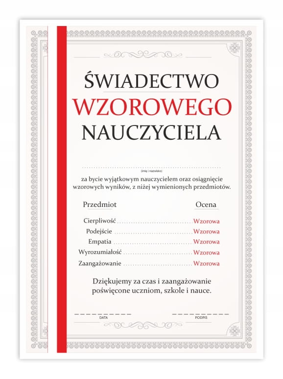 - Świadectwo z czerwonym paskiem dla Nauczyciela na Zakończenie roku szkolnego