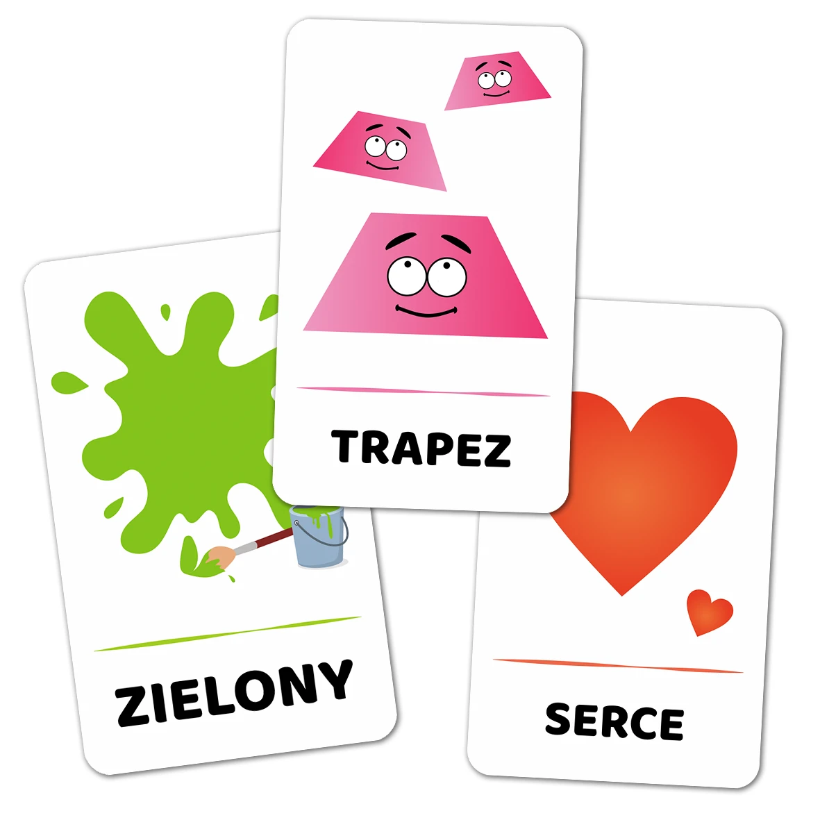 - Karty Kolory, Figury i Kształty dzielą się na 3 Kategorie: 11 Kolorów, 9 Figur, 7 Kształtów + 3 okładki