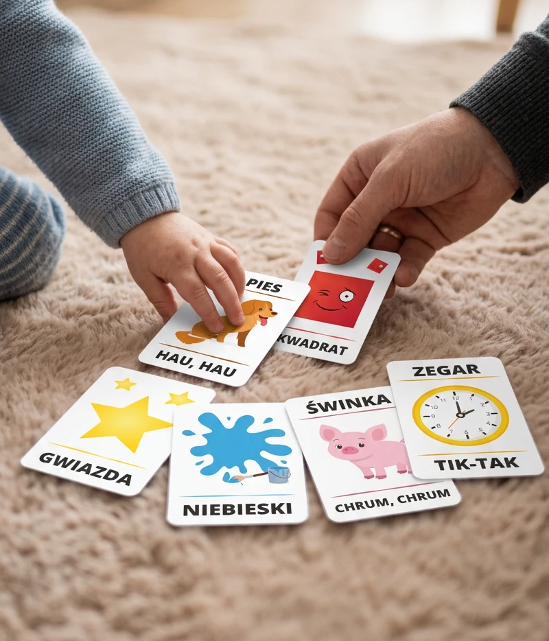Te karty to nie tylko nauka rozpoznawania zwierząt, słów, kolorów i kształtów! Można z nich tworzyć zadania, historyjki. Dzięki temu dzieci w przystępny i atrakcyjny sposób rozwijają swoje umiejętności językowe i poznawcze, łącząc naukę z przyjemnością zabawy.